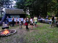 ogniska. Najmłodsi uczestnicy zajęli się grą w piłkę, układaniem puzzli, tańcami