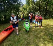 20 lipca 2024 r. - podobnie jak w roku poprzednim – przedstawiciele Regionu IPA Opole IV Granica, ZT NSZZ FSG przy PSG w Opolu oraz Klub HDK PCK „Nasza Opolska Krew” zorganizowali spływ kajakowy po Małej Panwi. Pogoda sprzyjała takiej formie rekreacji. Trasa, którą płynęliśmy okazała się pełna niespodzianek. W pewnym momencie spływu naszą dalszą drogę uniemożliwiło przewrócone z jednego brzegu na drugi - duże drzewo. Kajaki nie mogły przepłynąć. Jednak nasza męska część załogi nie poddała się i dzielnie wyskoczyła z kajaków do wody (poziom po pachy) i każdy z kajaków przerzucali na drugą stronę drzewa. Załoga w tym czasie oczekiwała na ….drzewie😊 i z niego wskakiwała na przerzucony kajak. Tak więc adrenalina była! Były też wywrotki – a więc to wszystko bez czego spływ nie byłby zaliczony😊 Płynęliśmy rodzinnie, z dziećmi większymi i mniejszymi. Po szczęśliwym wyjściu na brzeg rzeki, uczestnicy spływu udali się nad pobliskie jeziorko, gdzie czekał pożywny bogracz, kiełbaski i nawet oscypki z grilla! Tam na spokojnie każdy opowiedział o swoich przygodach i wrażeniach ze spływu.